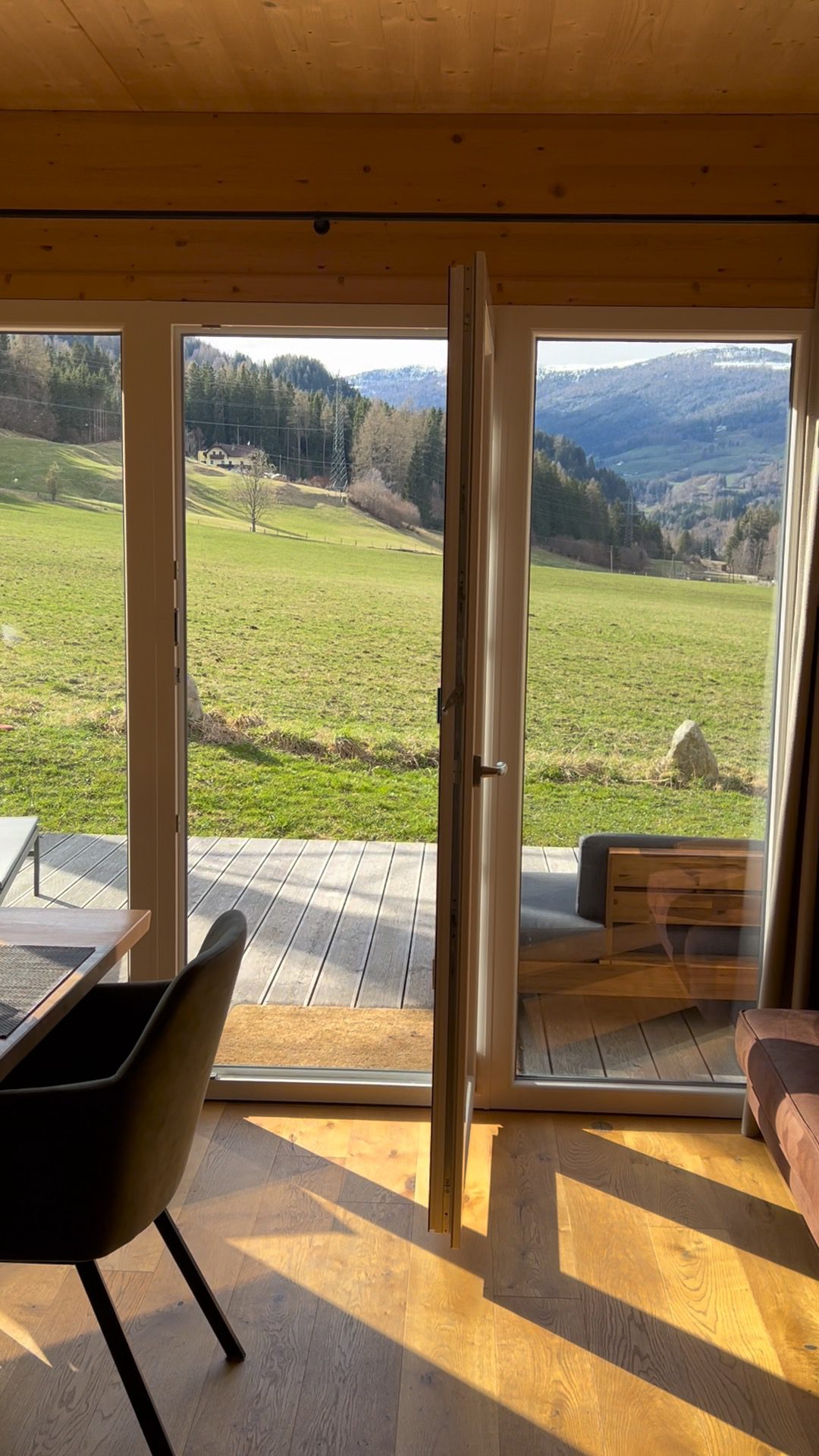A spacious terrace opening directly onto the meadow.